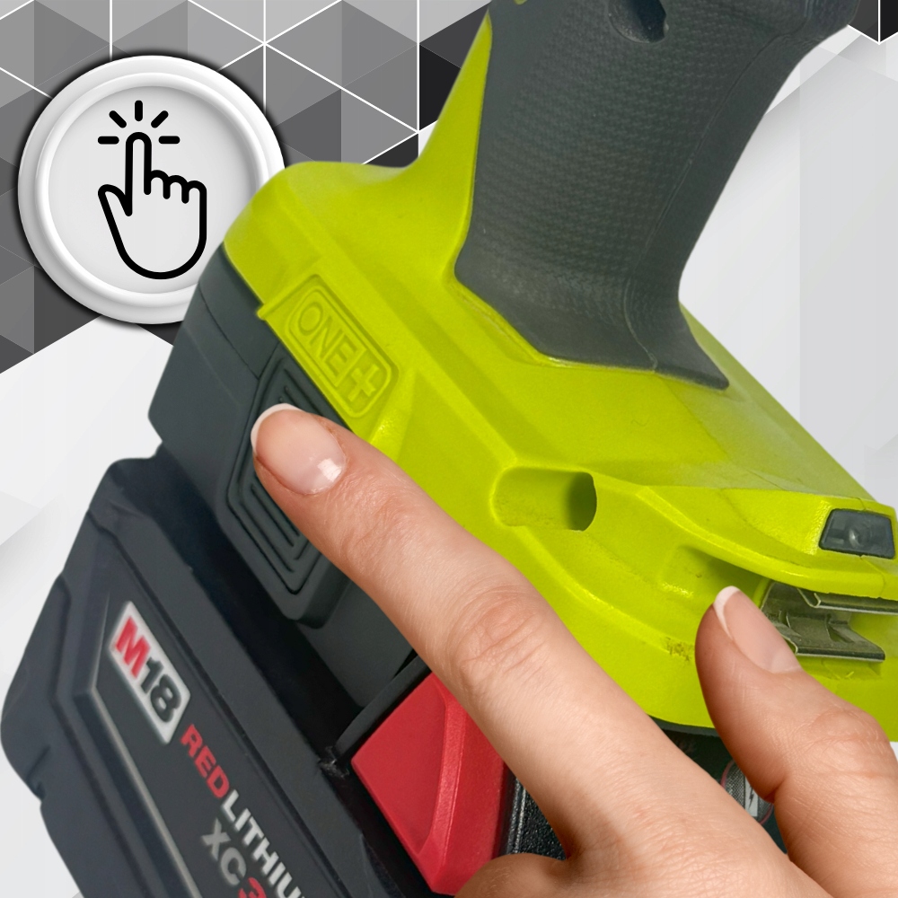 ✔ дозволяє постачати інструменти Ryobi з батареї Мілуокі