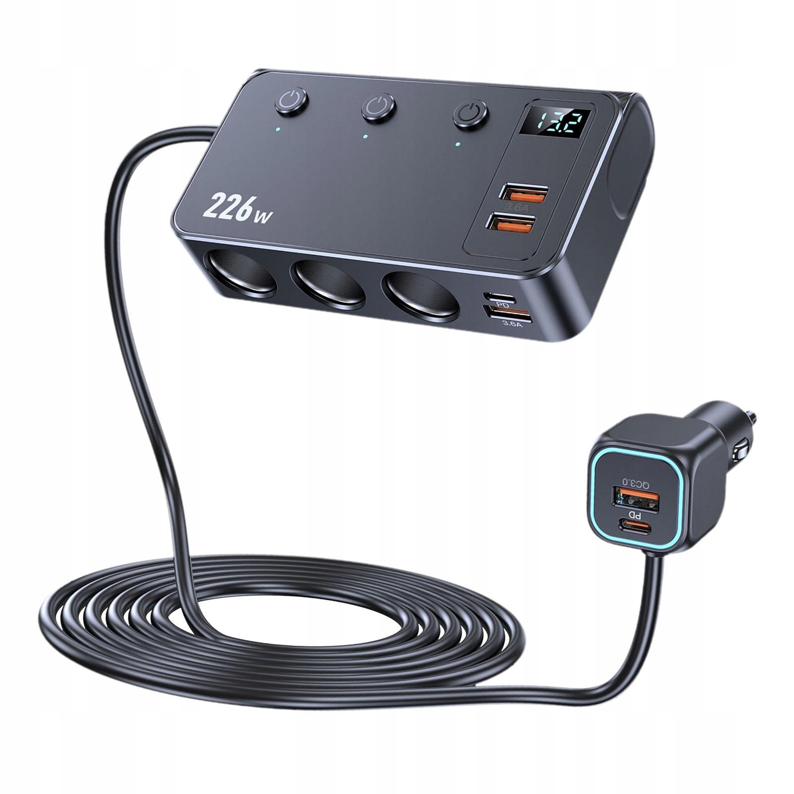 Адаптер автомобіля зарядного пристрою 226 Вт з дисплеєм напруги кабелю легше до