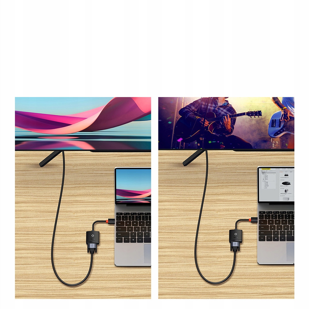 Адаптер Baseus HDMI - VGA — це практичний адаптер, який дозволяє підключати ноутбук, комп’ютер або консоль за допомогою роз’єму HDMI до телевізора, монітора або проектора, оснащеного роз’ємом VGA. Його невеликий розмір означає, що він поміститься в будь-яку сумку або чохол для ноутбука. Адаптер дозволяє передавати зображення в Full HD 1920 x 1080 px і роздільній здатності 60 Гц. Він сумісний з Windows, iOS і Linux, працює в режимі Plug&Play. Конвертер Baseus виготовлений з міцного матеріалу ABS, що забезпечує тривале використання, а кабель посилений нейлоновою опліткою. Адаптер додатково має аудіороз'єм 3,5 мм для передачі звуку на вихідні пристрої, а також порт Micro-USB.