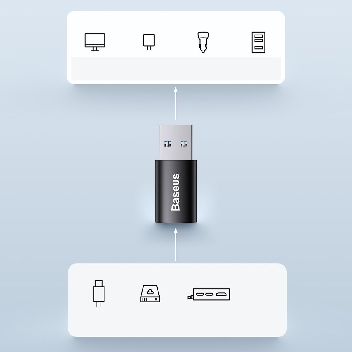 ⚡ Невеликий адаптер USB 3.1 – USB Type C виробництва Baseus. Виробник made з високоякісних матеріалів, практичний адаптер, який дає змогу підключати ряд аксесуарів за допомогою штекера USB Type-C до звичайного порту USB.
