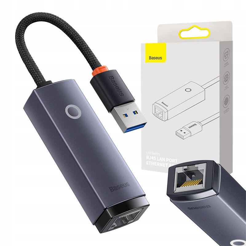 - 1x мережевий адаптер Baseus Lite Series USB – RJ45, 1000 Мбіт/с (сірий)