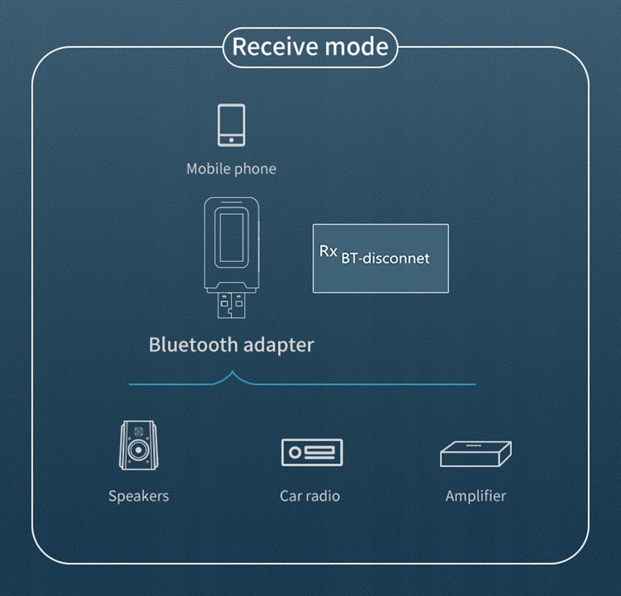 Використовується для передачі музики, що передається через зв’язок Bluetooth із таких пристроїв, як смартфон або планшет, до приймачів наприклад приймач, набір динаміків або автомобільний аудіоплеєр через допоміжний кабель 3,5 мм