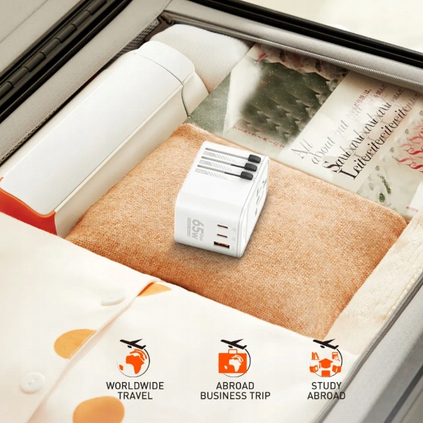 Універсальний адаптер для подорожей LDDO Z6 з двома USB-C (PD) та One USB-A (QC 3.0) пропонує швидку зарядку до 65 Вт. Смартфони та пристрої , що робить його незамінним аксесуаром для вимогливих користувачів.