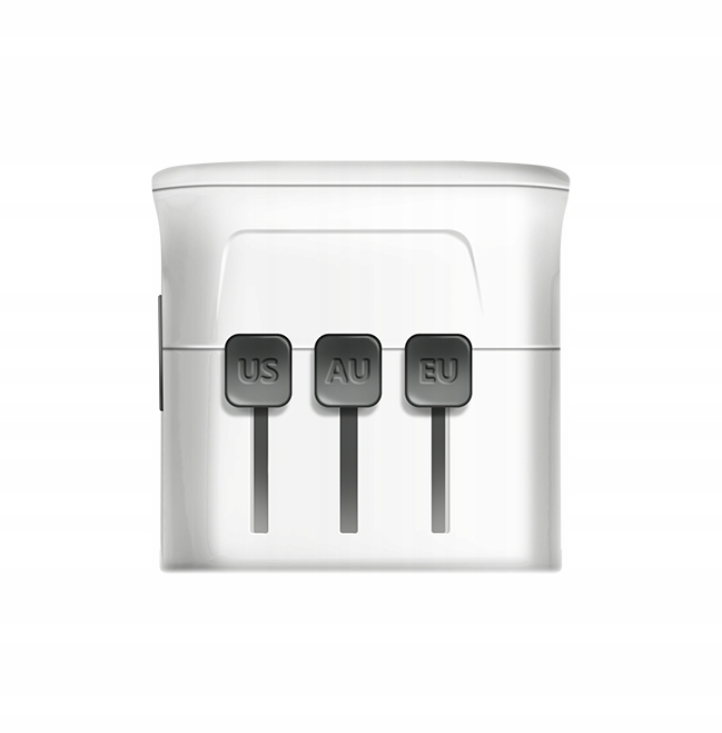 Земляний глобальний адаптер, що забезпечує безпечне з'єднання пристроїв у всьому світі . Містить три типи плагінів в одному (ЄС, США, Аус/Китай)