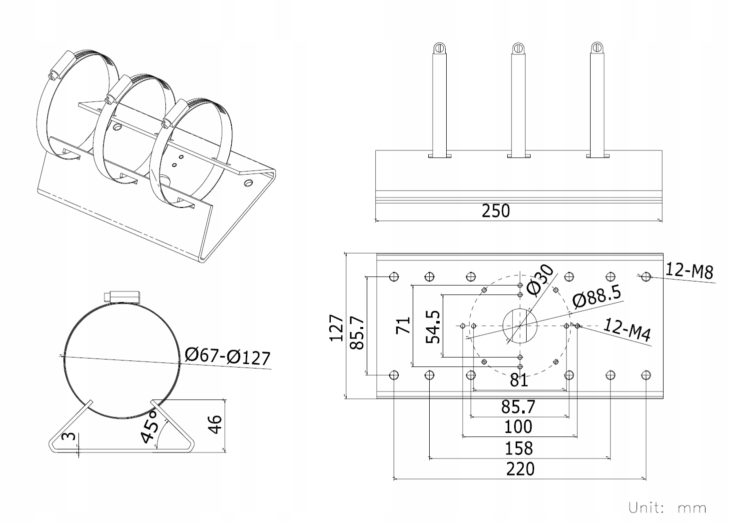 Ручка DS-1275zi-SUS дозволяє встановлювати камери Hikvision на полюс діаметрі 67-127 мм, з максимальною вагою в Інтернеті 10 кг.