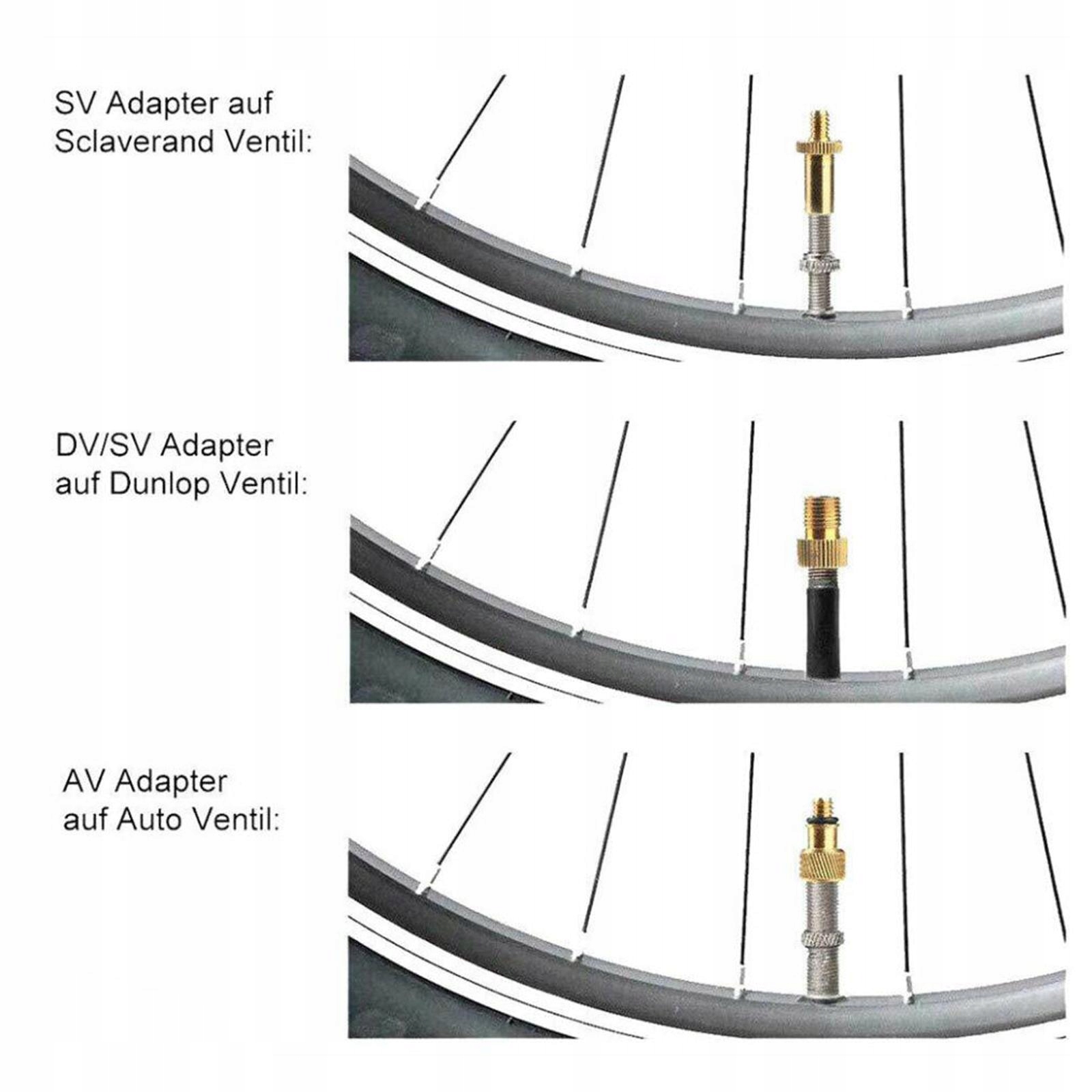 В набір входять адаптери 3 типів (SV, DV, AV), адаптер клапана для велосипедних шин Presta і Schrader, адаптер повітряного голчастого клапана для різних спортивних м'ячів, надувний клапан для плавального кільця p>