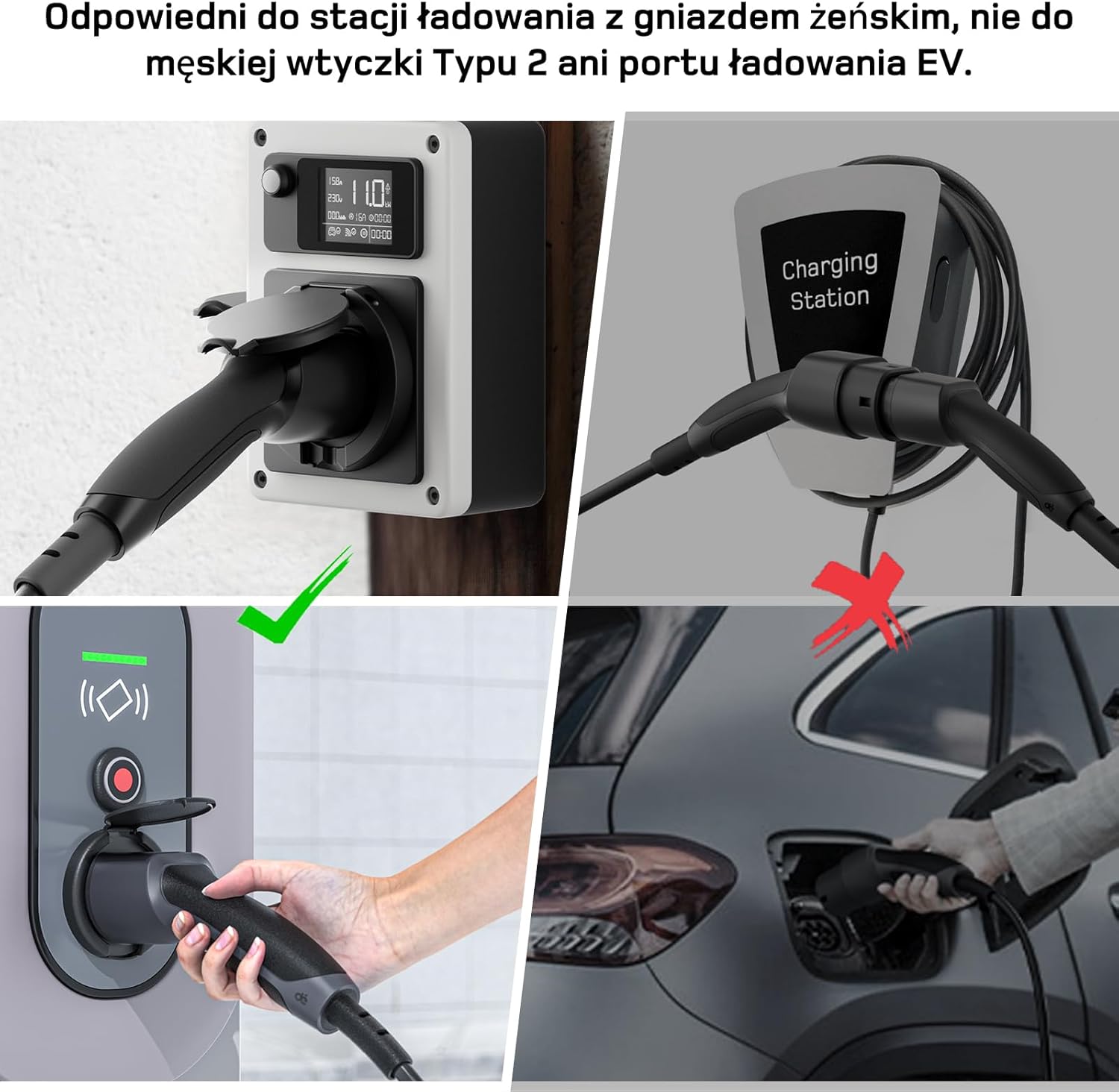- Примітка: підходить лише для зарядних станцій із гніздом, а не для штекера типу 2 або зарядного порту EV. Легко від’єднайте від колон без натискання кнопки.