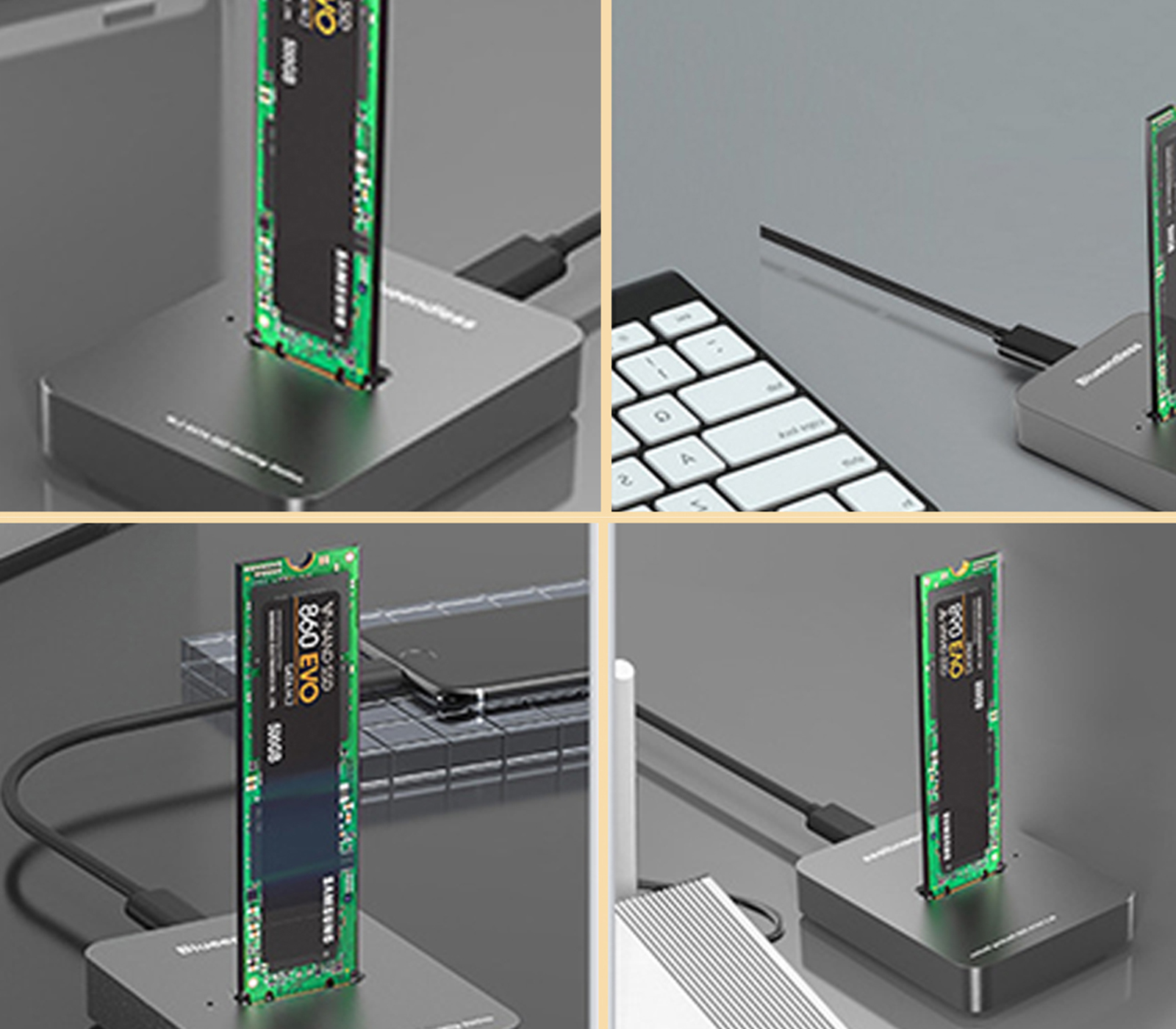 -Завдяки застосуванню вертикальної лінійної конструкціїрозсіювання тепла жорсткого диска відбувається без перешкод, забезпечуючи роботу жорсткого диска за низьких температур. Основа виготовлена з алюмінієвого сплаву, який швидко розсіює тепло, не пошкоджуючи жорсткий диск.⚡️