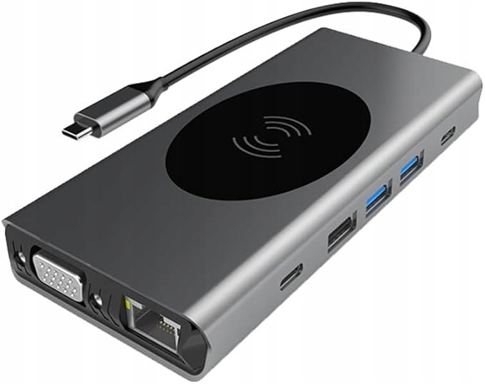 Адаптер USB-C Hub 13-в-1 із функцією бездротового заряджання легко розширює порти Type-C/Thunderbolt 3 для ноутбуків USB-C до 12 портів і забезпечує бездротову зарядку: 4K HDMI, VGA, Ethernet LAN, 2 × USB 3.0, USB 2.0, USB C 3.0 і 2.0, 100 Вт PD, SD/TF кардрідер і 3,5 мм аудіо.
