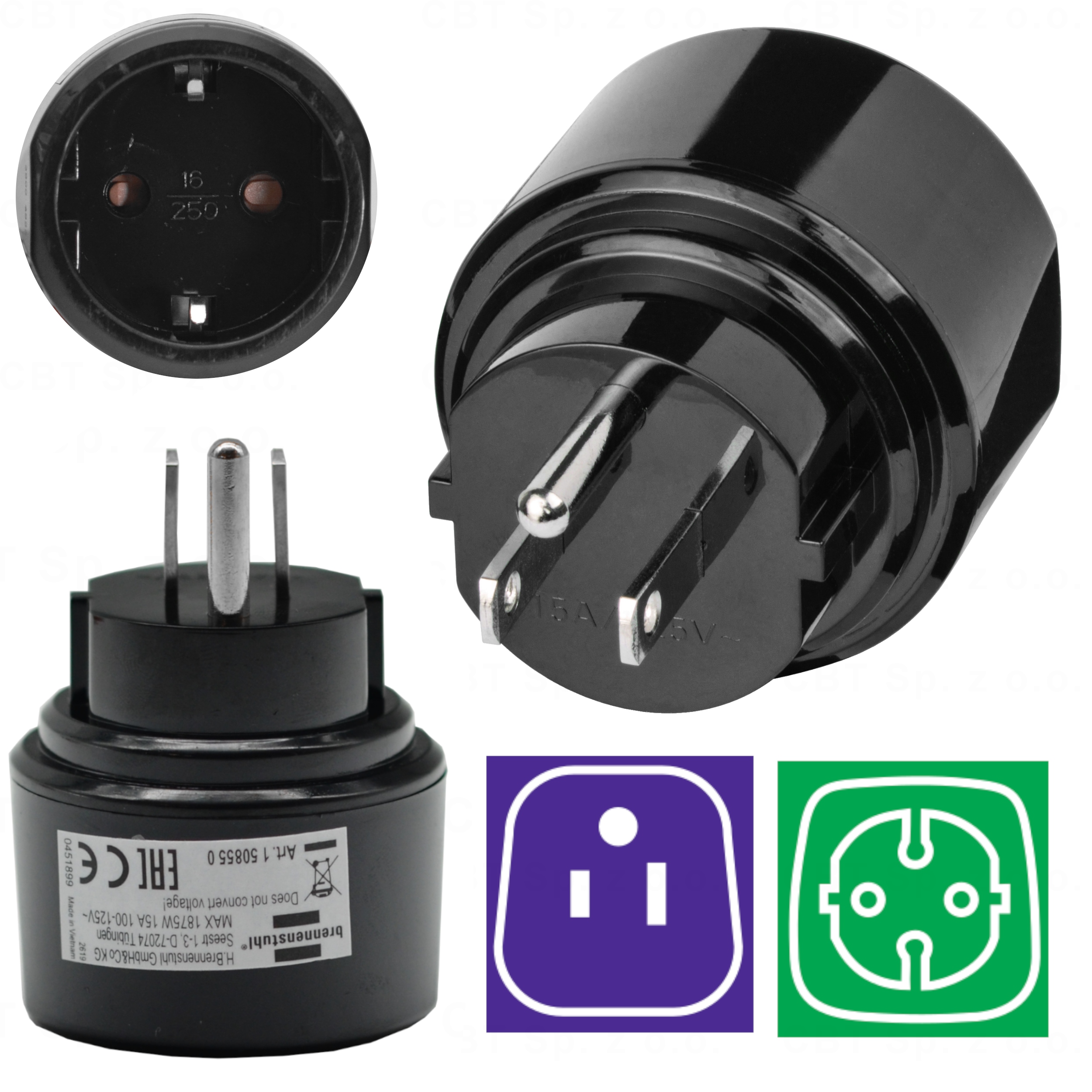 Дорожній перехідник з євророзеткою типу A Канада, США, Домініканська Республіка, Мексика Brennenstuhl