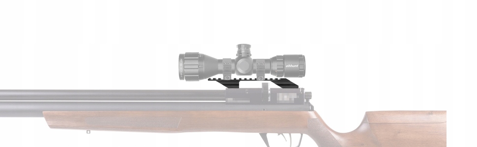Адаптер прикріплений до рейки 3/8 Dovetail і перетворює його в рейку Пікатінні для встановлення оптики телескопа з червоними крапками.