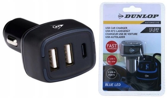 Шукаєте універсальний автомобільний зарядний пристрій? MULTI CAR CHARGER 2x USB A + USB C DUNLOP - незамінне джерело енергії під час подорожей. Розроблений з урахуванням потреб сучасного водія, він поєднує технологію, стиль і функціональність.