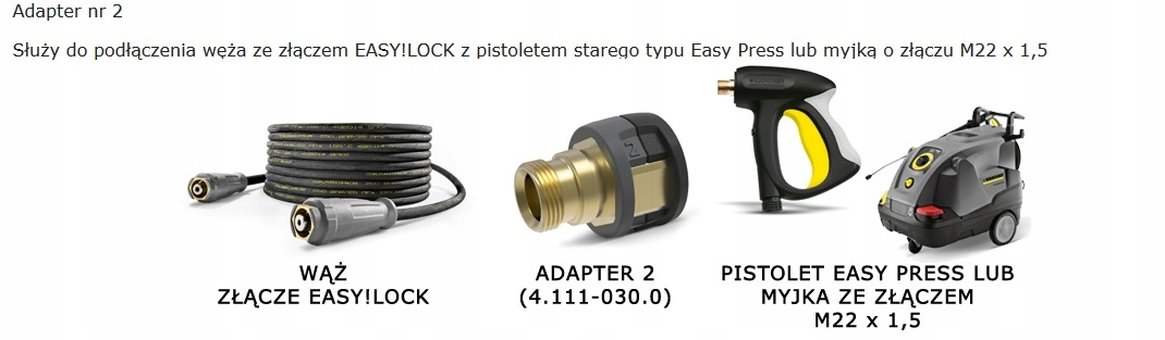 Просматривая «ADAPTER EASY!LOCK Karcher 2 TR22IG-M22x1,5mm», вы можете быть уверены, что данный товар из каталога «Адаптеры» будет доставлен из Польши и проверен на целостность. В цене товара, указанной на сайте, учтена доставка из Польши. Внимание!!! Товары для Евросоюза, согласно законодательству стран Евросоюза, могут отличаться упаковкой или наполнением.