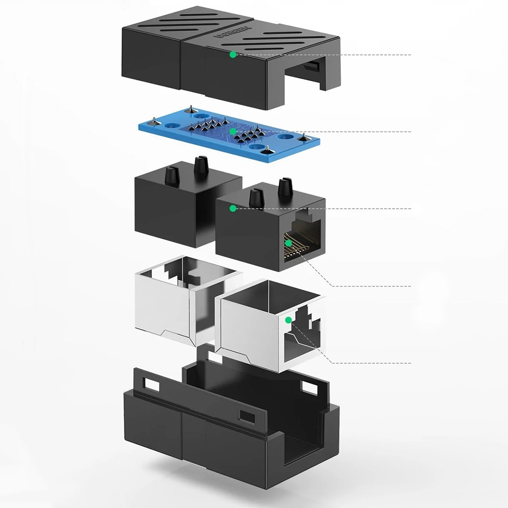 Дозволяє підключити 2 кабелі Ethernet, таким чином створюючи довший відрізок. Він також може виконувати роль роз’єму мережевої схеми. Це надзвичайно практичне рішення, коли кабелі занадто короткі.