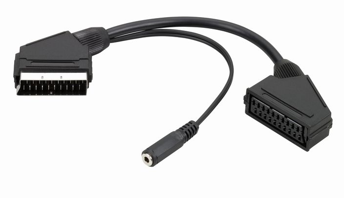 - аудіо/відео адаптер EURO male <-> EURO female + 1 Mini JACK 3,5 мм аудіо стерео (роз’єм).