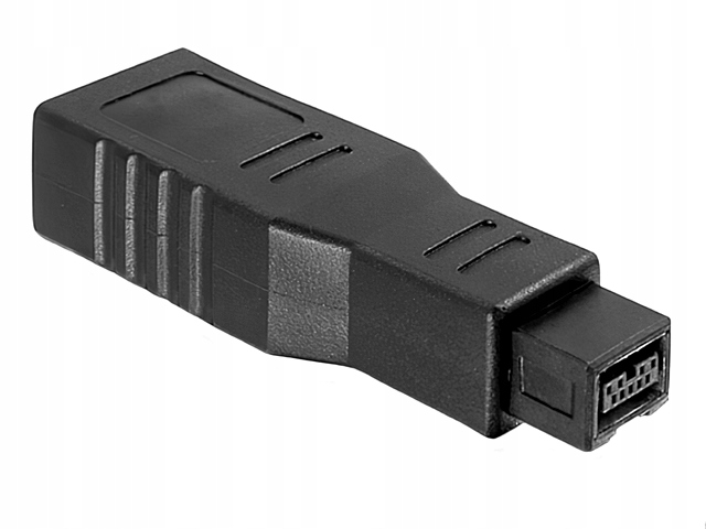 Адаптер 9P/6P, який ми пропонуємо, має штекер beta 9P з одного боку та роз’єм alpha 6P з іншого. Він дозволяє замінити роз’єм 9P (бета-версія 800 Мбіт/с) на роз’єм 6P (альфа-400 Мбіт/с) щоб увімкнути підключення старішого обладнання (карта FireWire PC, сканер тощо) за допомогою роз’єму 6P до новішого стандарту 9P (бета-версія 800 Мбіт/с). Звичайно, швидкість передачі обмежена 400 Мбіт/с.