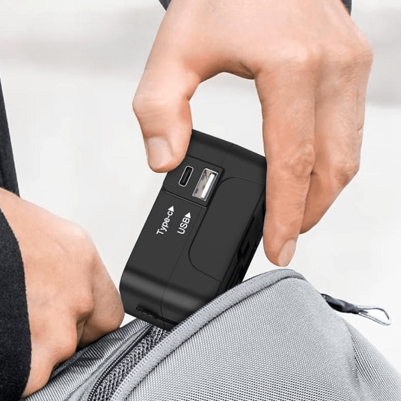 Два USB-роз’єми в адаптері дозволяють заряджати два пристрої одночасно, що є надзвичайно практичним під час подорожей, коли доступ до електричних розеток обмежений. Ця функція особливо корисна в ситуаціях, коли мандрівникам потрібно зарядити свій телефон, планшет або інші мобільні пристрої в готелі, в аеропорту або під час подорожі.