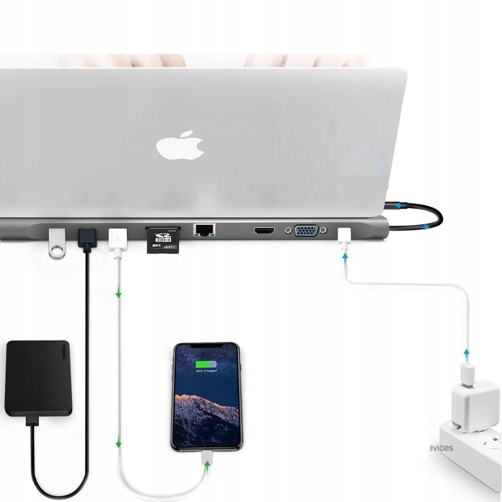 Цей багатофункціональний концентратор дозволяє підключати пристрої з Thunderbolt 3 , USB-C, USB-A, роз’єм 3,5 мм, VGA, HDMI 4K і Gigabit EthernetRJ-45 до порту USB-C/Thunderbolt 3. На додаток до Зі згаданих інтерфейсів хаб оснащений пристроєм для читання карток microSD і SD. Ви можете заряджати свій Mac і використовувати всі порти одночасно.