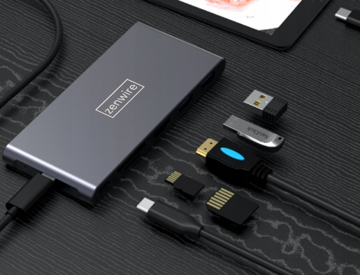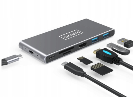 ХАБ USB-C АДАПТЕР 8 в 1 ZENWIRE з портами: HDMI 4K, 2x USB, SD і micro SD, Power Delivery 100W + SATA m.2 SSD pocket