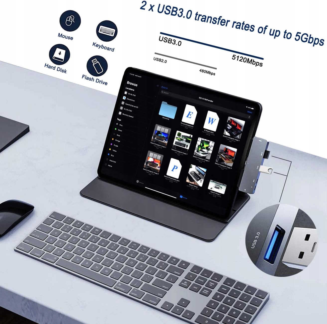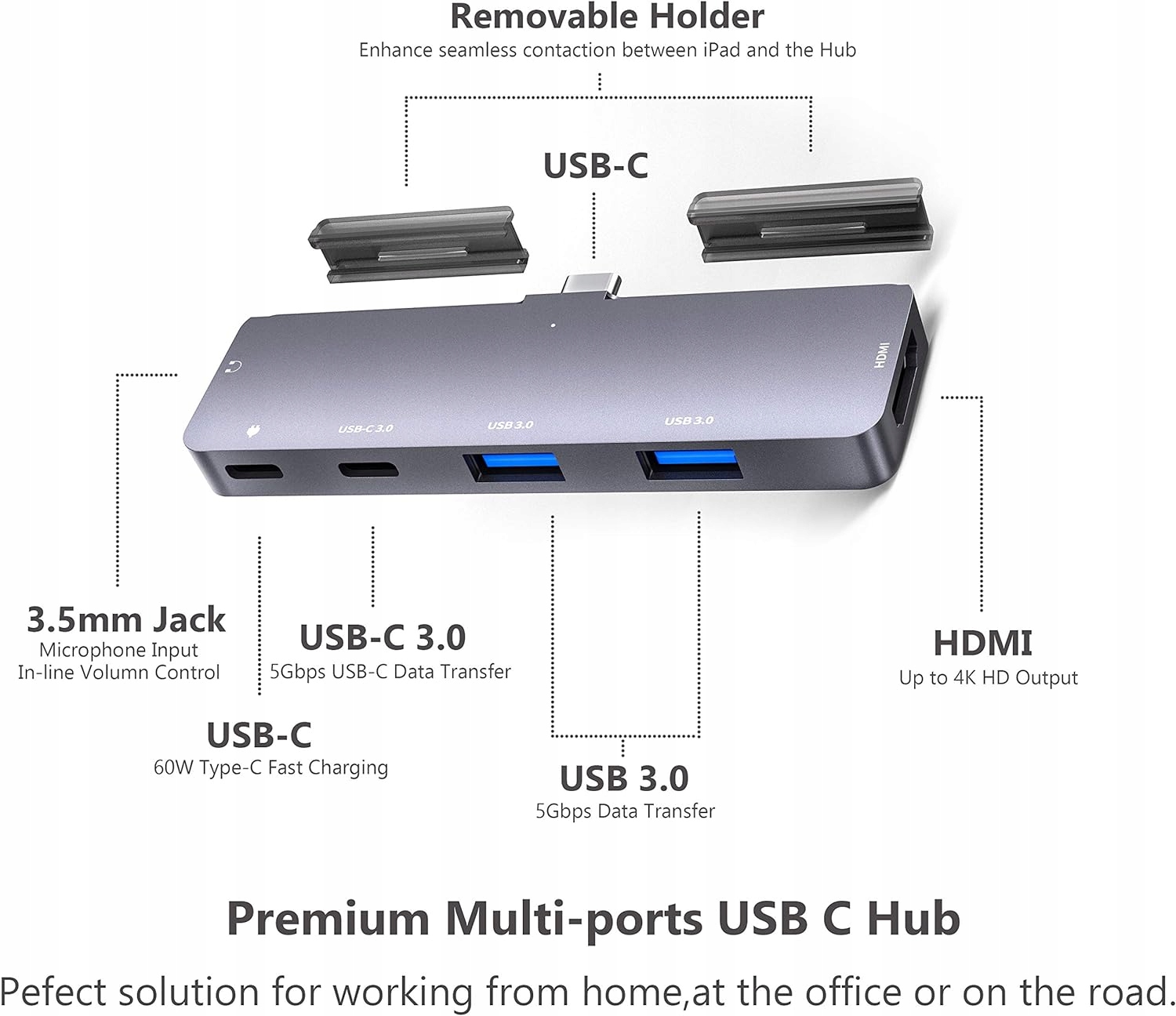 - Сумісність із iPad Pro 2021/2020/2018 11 дюймів/12,9 дюймів/iPad Air 4/iPad Mini 6, швидке розширення за допомогою порту 4K HDMI, 3,5-мм аудіороз’єму, USB-C для заряджання та порту даних, 2 x Порт USB 3.0. Максимально розкрийте можливості свого iPad Pro.