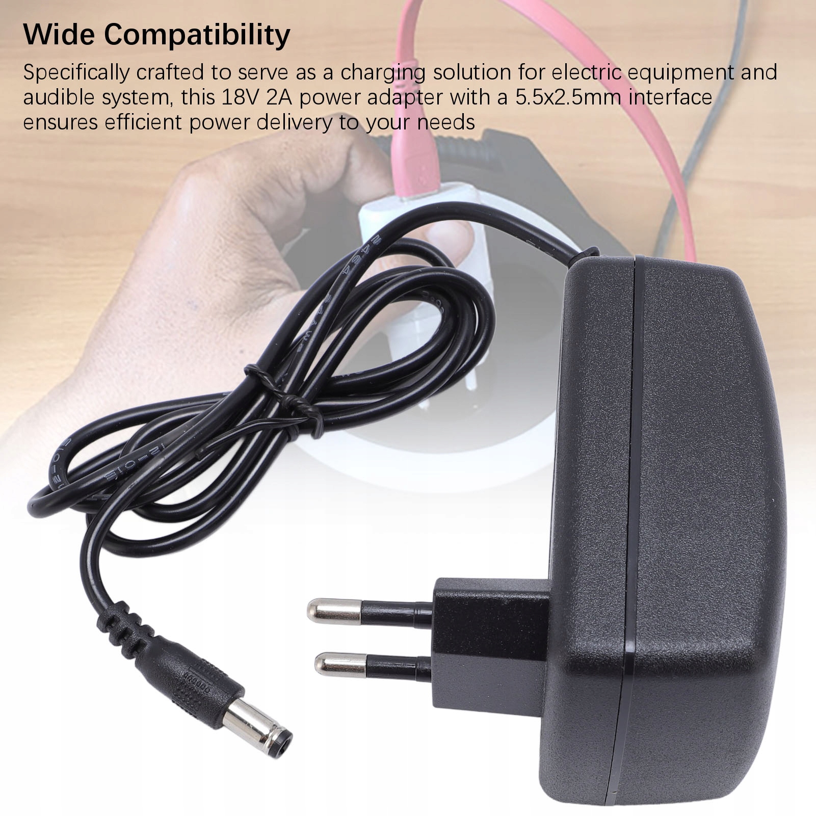 5. Широка сумісність: розроблений спеціально для заряджання електричного обладнання та звукових систем, цей блок живлення 18 В 2 А з інтерфейсом 5,5 x 2,5 мм забезпечує ефективне живлення для ваших потреб
