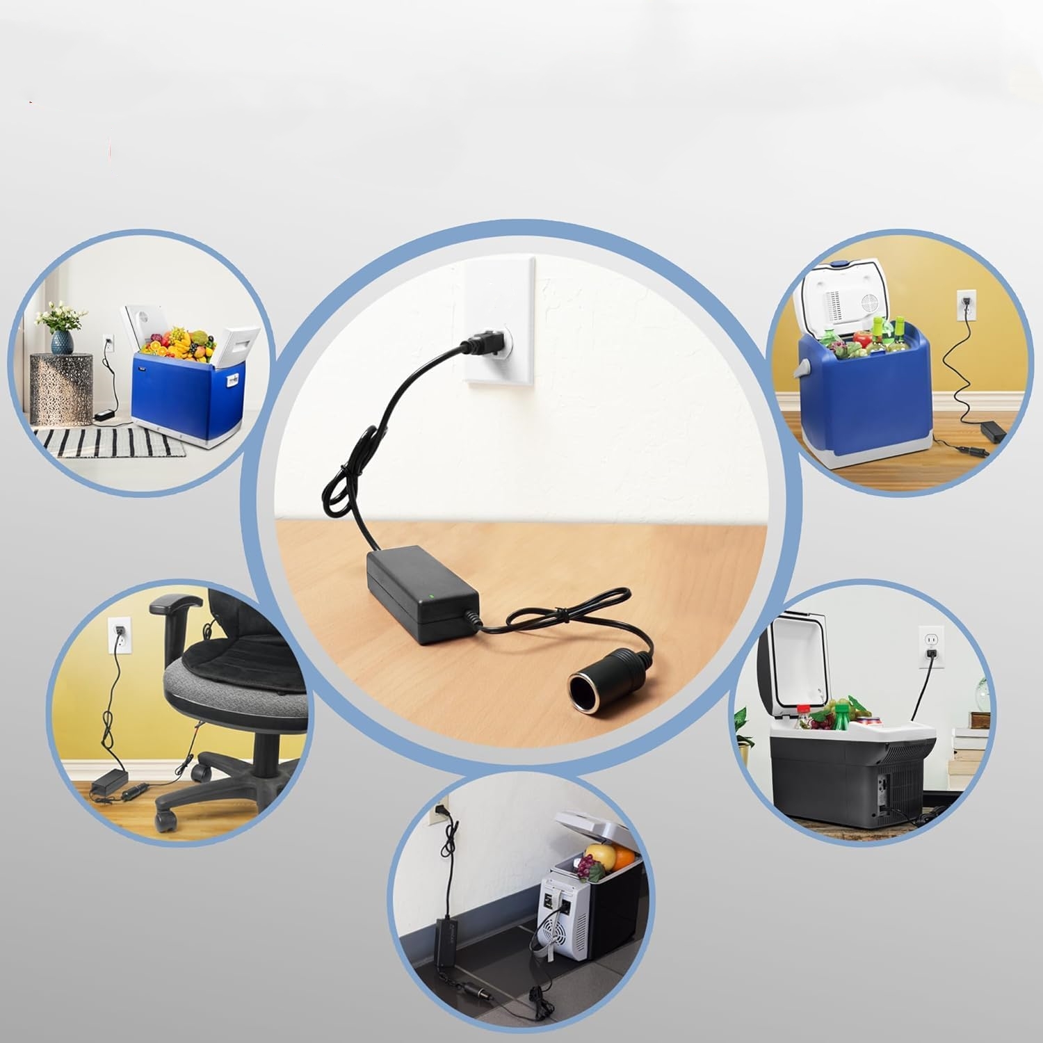 Високоякісний адаптер 230 В для гнізда автомобільного прикурювача 12 В для домашнього використання автомобільних аксесуарів, таких як автомобільні пилососи чи автомобільні холодильники. Оскільки він перетворює побутовий струм на 12 В постійного струму та має гніздо для прикурювача, ви можете використовувати вдома автомобільні аксесуари та аксесуари, які підтримують вхід 12 В, як-от автомобільні холодильники та автомобільні пилососи