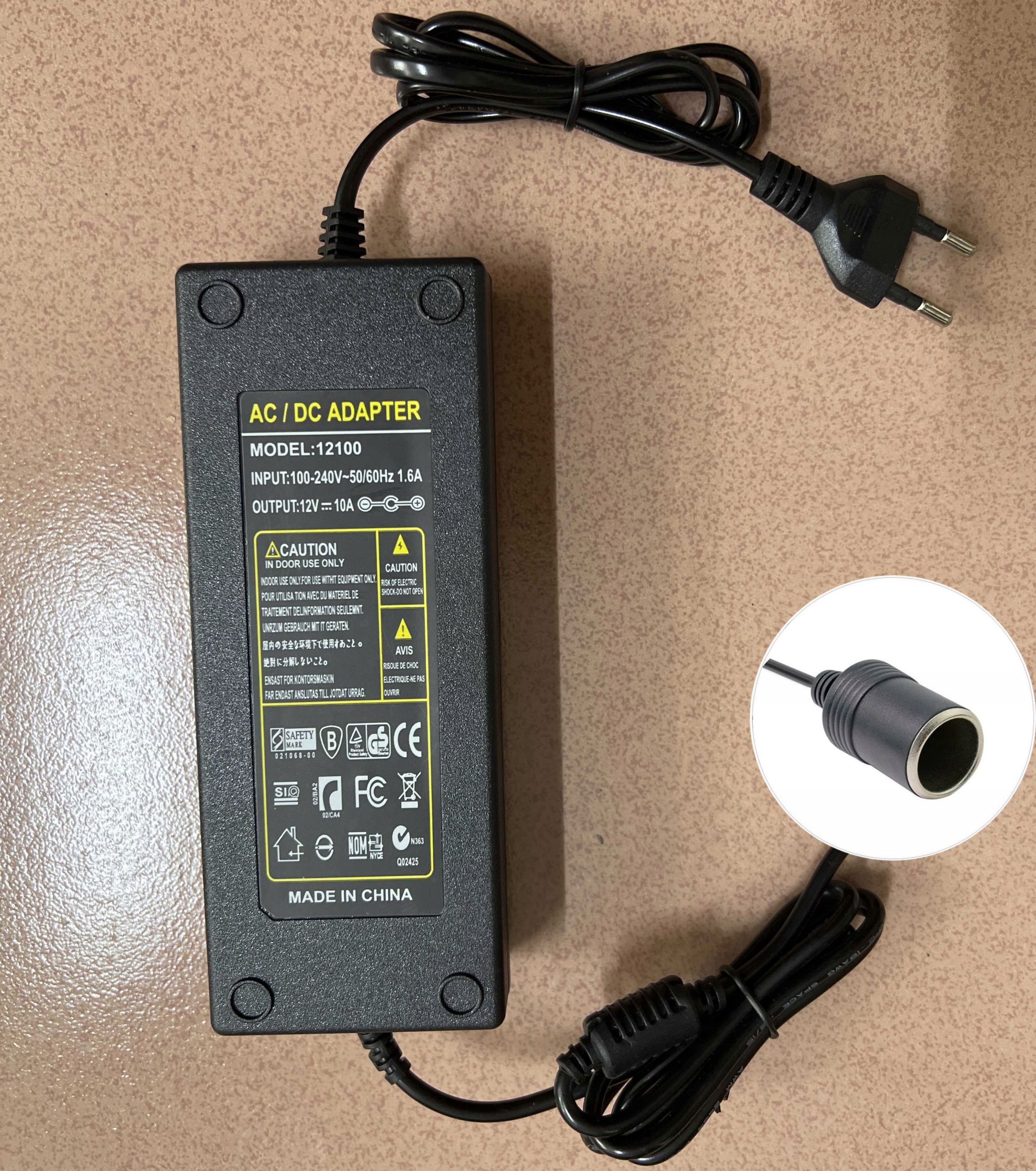 Адаптер живлення 230 В на 12 В 10 А Адаптер розетки прикурювача 120 Вт