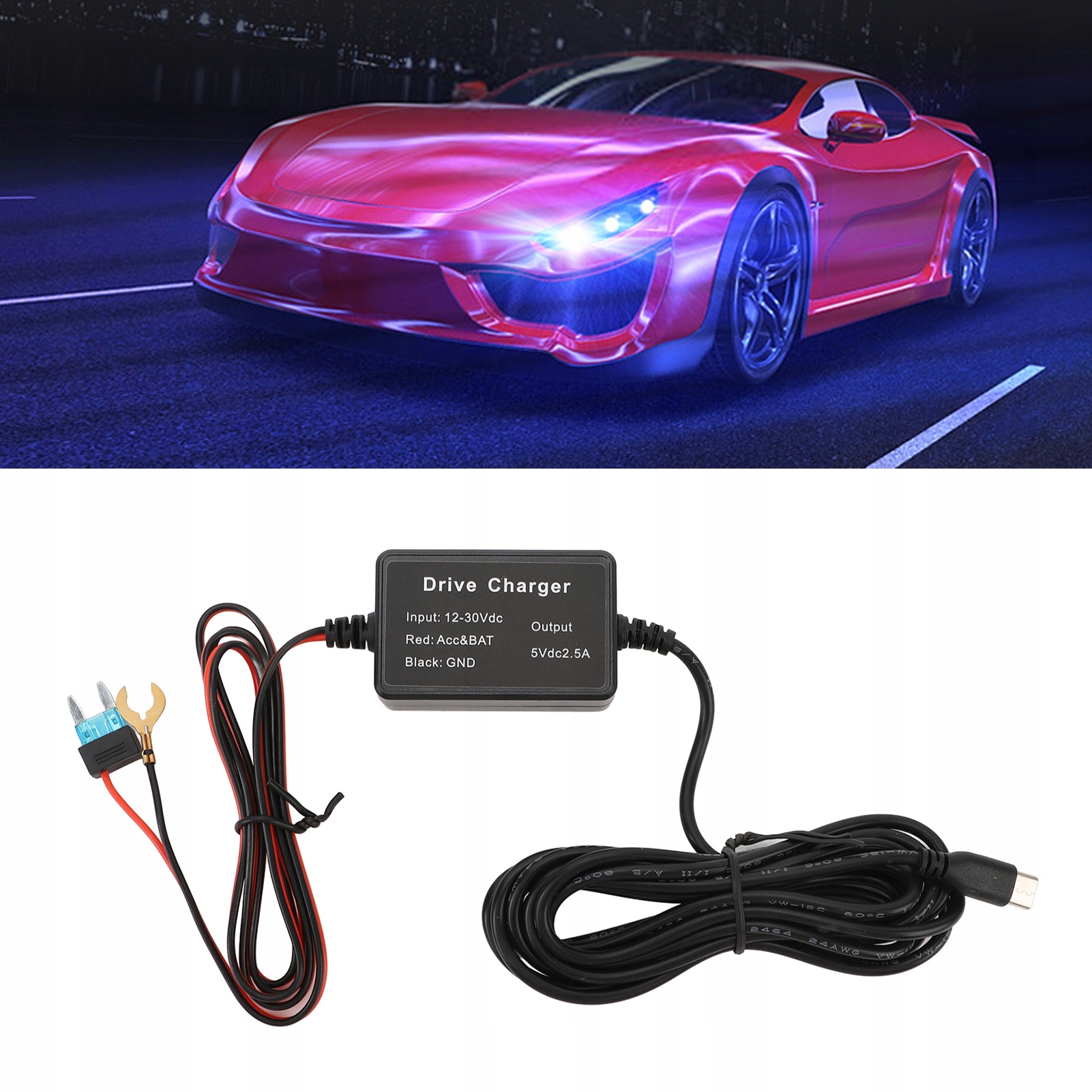Комплект електропроводки камери приладового приладу Стабільна вихідна потужність 12 В-30 В до 5 В типу C для бездзеркальних камер GPS-навігаторів Радар-детекторів Джерело живлення .. АДАПТЕР ЖИВЛЕННЯ ДЛЯ ПРОВОДКИ АВТОМОБІЛЬНОЇ КАМЕРИ 12 В-30 В ДО 5 В