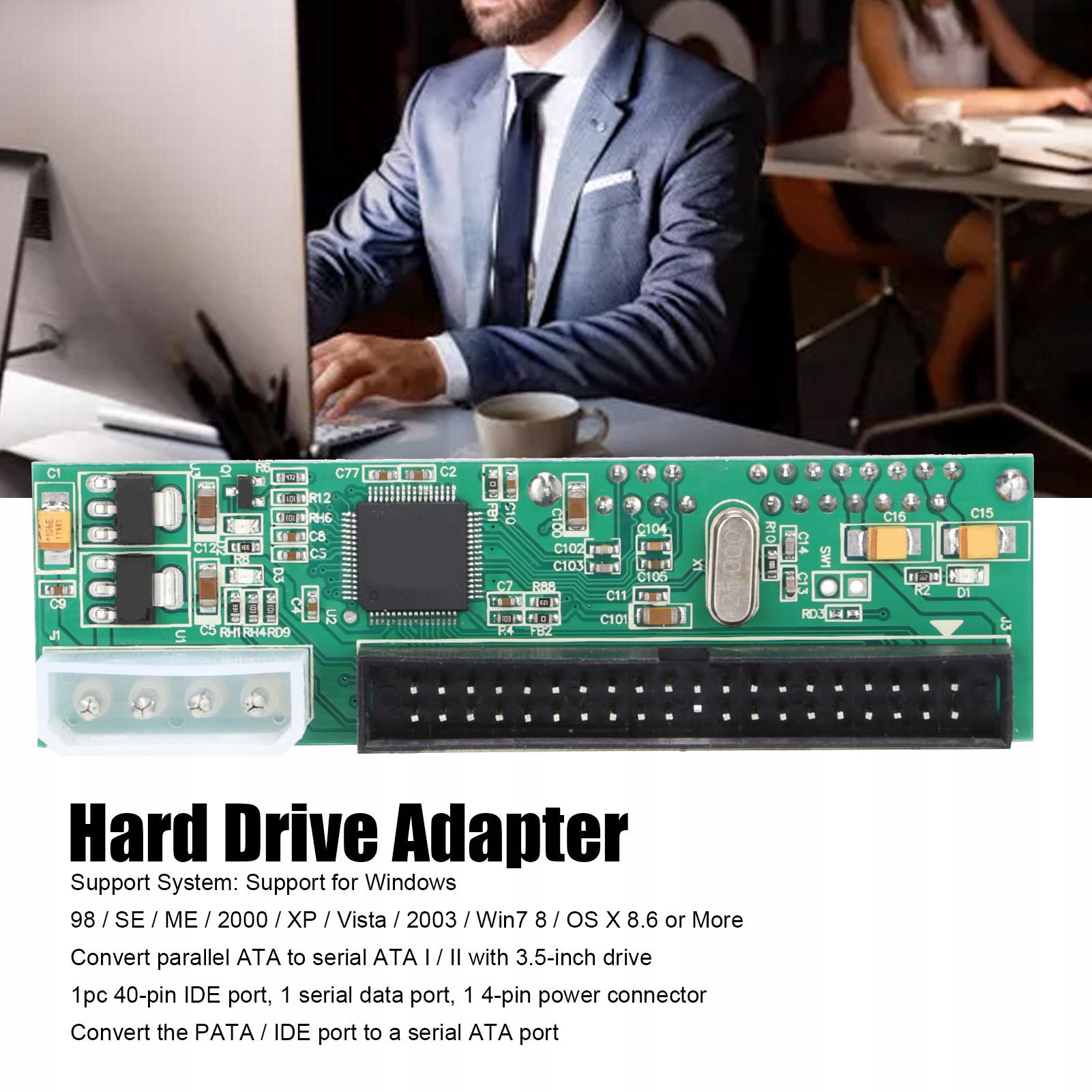 5. Цей адаптер призначений для того, щоб дозволити старій комп’ютерній системі з інтерфейсом IDE/EIDE/PATA додати або оновити існуючий жорсткий диск до оновленого жорсткого диска SATA