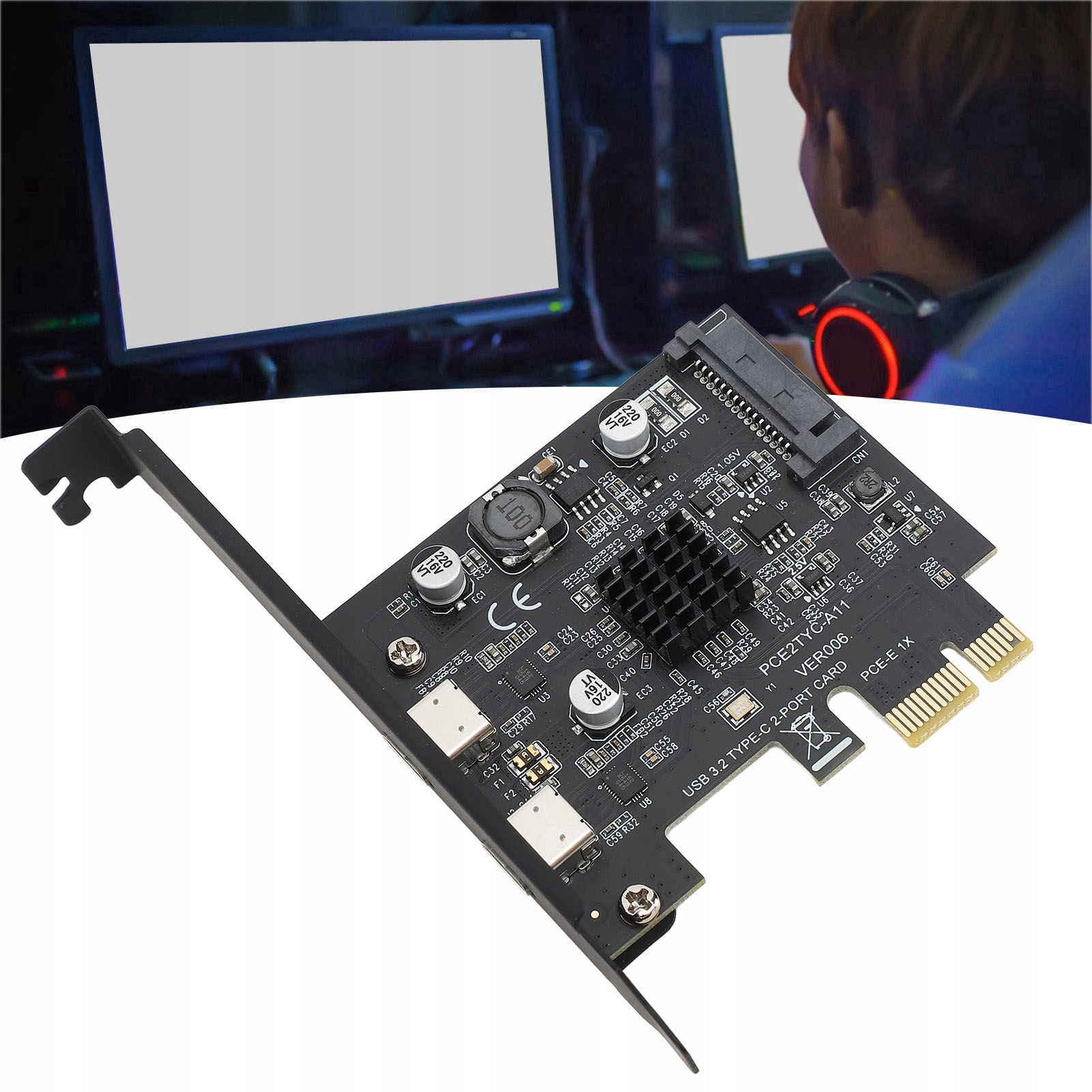 Карта розширення USB 3.2 PCI Express GEN2 Dual Type C, швидка карта розширення PCI Express 10 Гбіт/с для комп’ютерів Windows