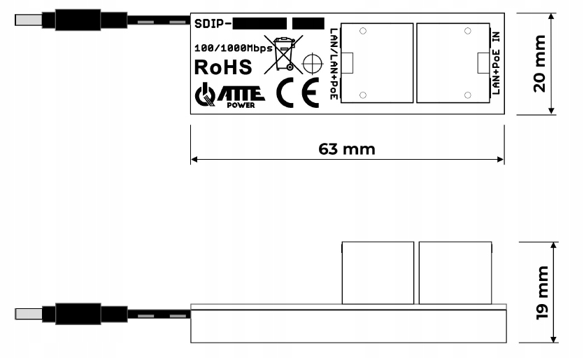 Адаптер призначений для працювати з комутатором PoE, що працює в стандарті 802.3af або PoE PASSIVE.