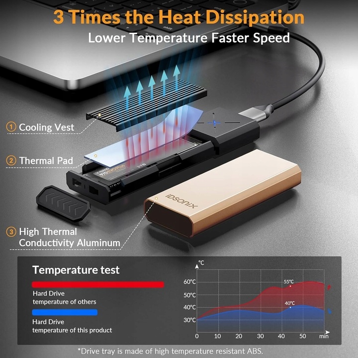 У цьому зовнішньому корпусі NVMe використовується вдосконалений основний чіп, який може підтримувати автоматичний сон, захист від перегріву, захист від перенапруги та інші функції, тому безпека SSD підвищується в 4 рази більше, ніж оригінальний, а термін служби SSD подвоюється.