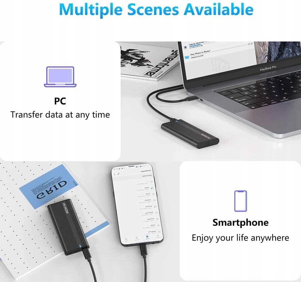 - Система підтримки: Шасі NVME SATAСумісність із кількома операційними системами, Windows, Mac OS, Linux і Android. Підтримка UASP/Trim із надшвидкою швидкістю передачі. Сумісний із Plug & Play і Hot-Swapping. Вміщує до 2 ТБ пам’яті (не входить у комплект).