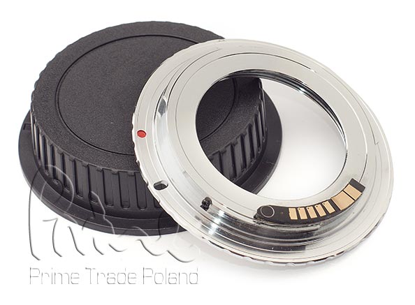 Адаптер для об'єктивів M42 (різьба 42 мм) для фотоапаратів Canon EOS, дзеркальних фотоапаратів з байонетним кріпленням EF і EF-S (всі сучасні дзеркальні фотоапарати Canon). Адаптер має мікросхему під назвою dandalion із попередньо завантаженим останнім програмним забезпеченням, доступним на ринку. Це найбільш універсальне програмне забезпечення, яке працює з найбільшою кількістю камер. Чіп є програмованим, що означає, що на відміну від звичайного адаптера з підтвердженням, ми можемо вільно змінювати значення діафрагми та фокусної відстані, а також можемо встановлювати корекцію, щоб наша камера ідеально фокусувалася «в точку». Це найточніші адаптери на ринку. Він має фіксатор діафрагми, який забезпечує безперебійну роботу з об’єктивом M42, незалежно від того, чи має об’єктив перемикач A/M чи ні.