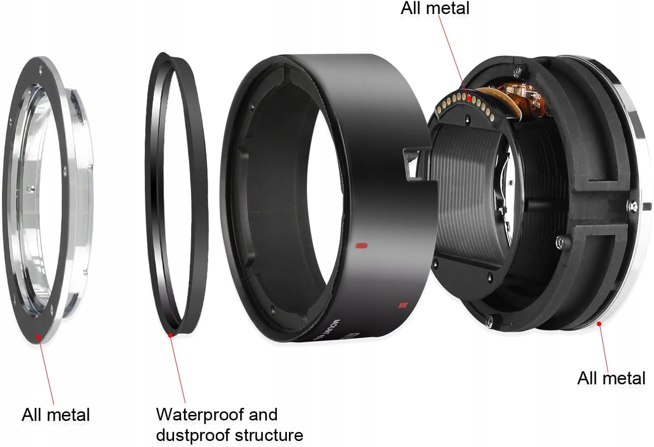 - Тримач об’єктива та кріплення камери цього адаптера виготовлені з металу, що робить виріб міцним, захищеним від води та пилу