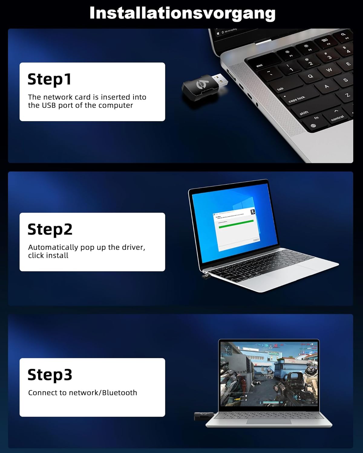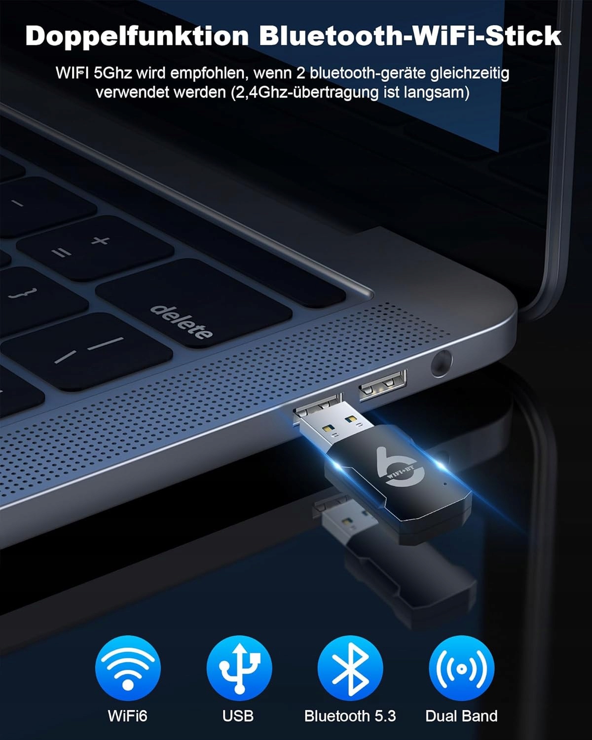 - Покращена продуктивність: Оновлення WIFI 6 WLAN stick, AX900 Мбіт/с (дводіапазонний 2,4+5,8g), Bluetooth 5.3, USB2.0, можна використовувати з маршрутизатором WiFi 6, швидша швидкість Інтернету, це набір універсальних USB-адаптерів Wi-Fi Bluetooth, легкий і портативний