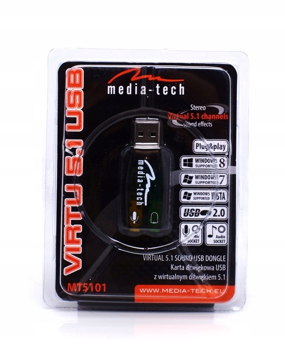 - MT5101 — це звукова карта USB, яка пропонує віртуальний звук 5.1