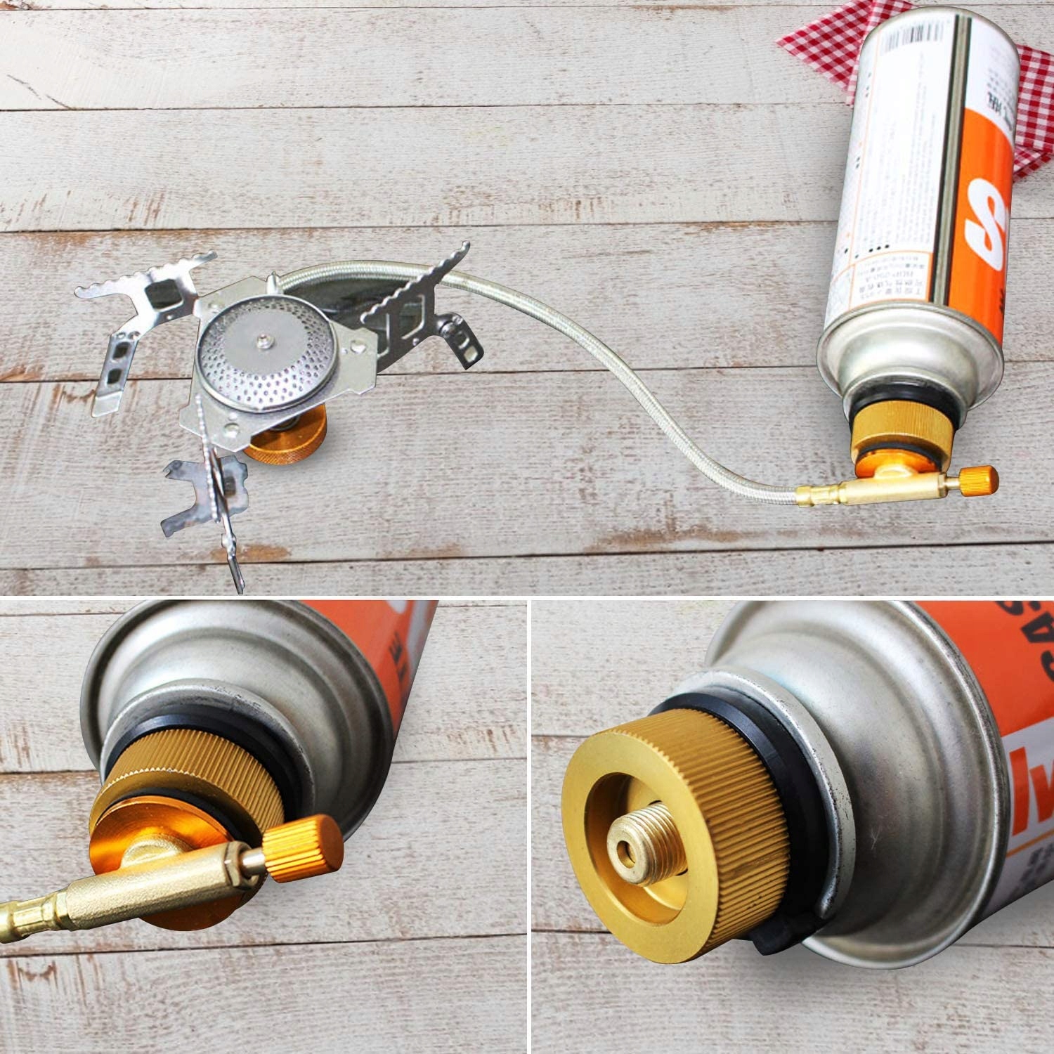 - за допомогою цього адаптера ви можете перетворити пляшку за допомогою насадки в контейнер з Lindal Valve, тому ви можете використовувати недорогий ємність для бутану для вашого кемпінгу. Ви можете з'єднати зовнішню духовку з гвинтовим клапаном з дешевшою пляшкою насадки. Він вимикається автоматично, коли духовка не підключена.