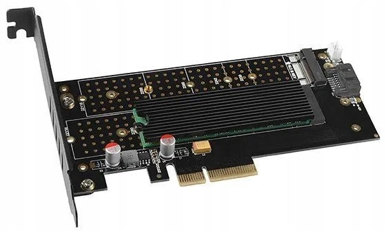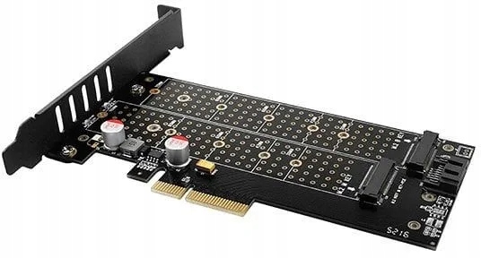 Подвійний синій, що вказує на світлодіод, вказує на з'єднання або передачу даних у слоті M.2. Оселедець з низьким рівнем профілю була прикріплена до встановлення адаптера до низькопрофільних корпусів. 4 x4/x8/x16 pcie.