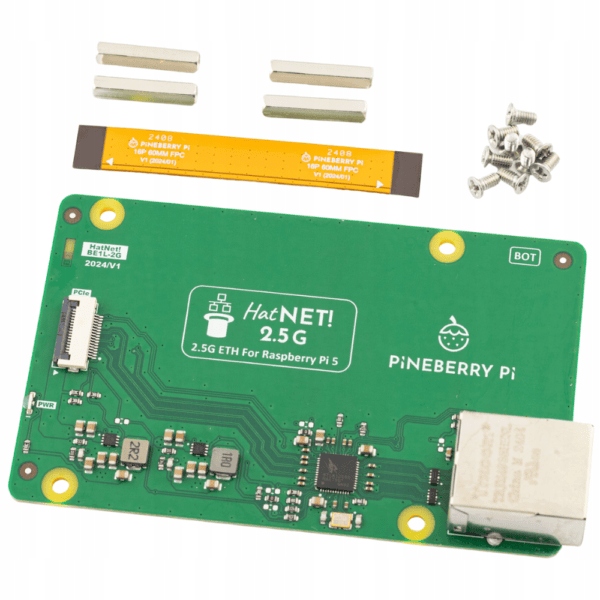 Розширте свій Raspberry Pi 5 за допомогою адаптера Pineberry HatNET PCIE! 2.5G, що забезпечує підключення 2.5 Gigabit Ethernet. Цей сучасний адаптер ідеально підходить для розширених програм, пропонуючи швидшу та ефективнішу мережу.