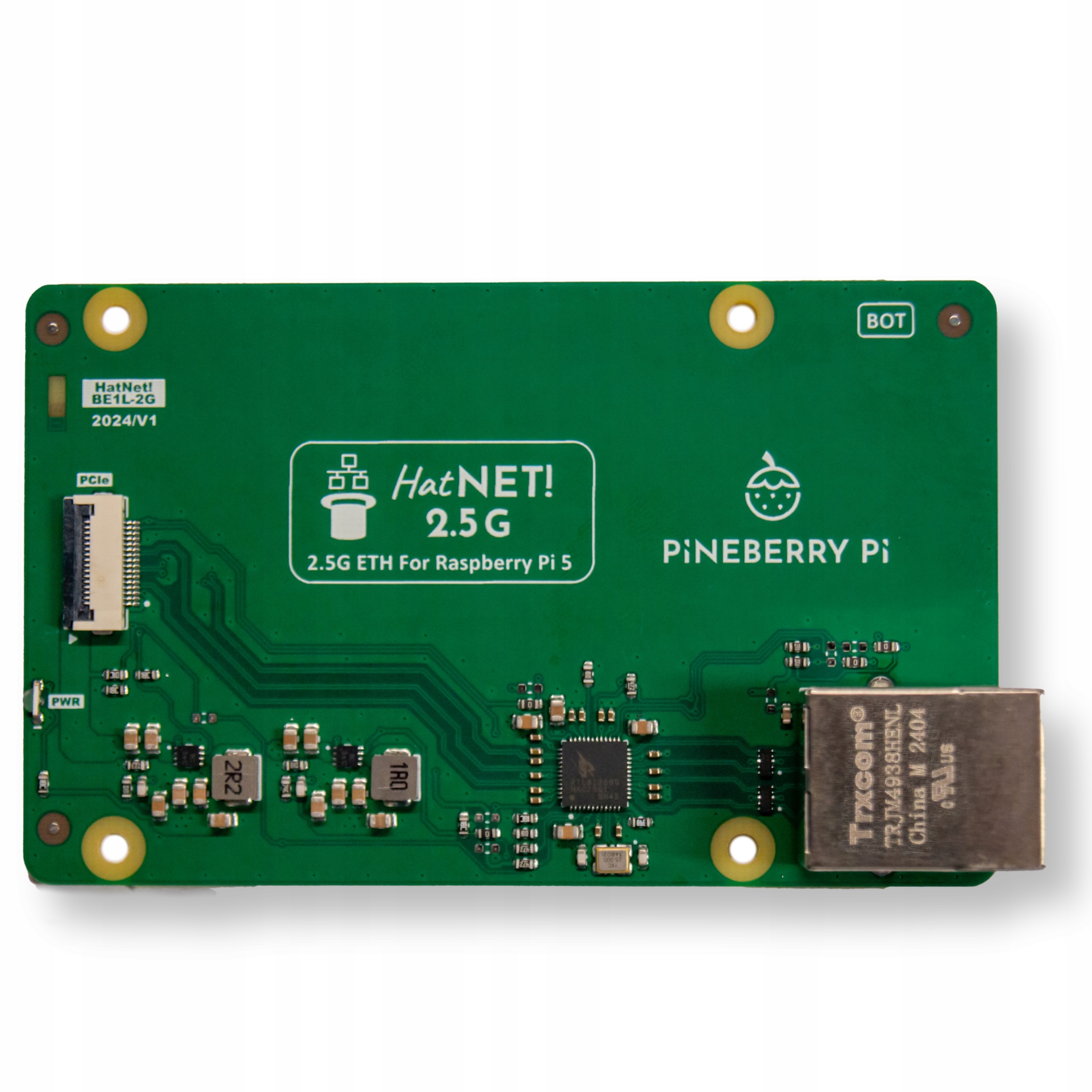 Дошка HatNET! 2.5G було спеціально розроблено, щоб доповнити Raspberry Pi 5, забезпечуючи повну інтеграцію та оптимальну продуктивність. Оснащений Realtek RTL8125BG, він пропонує підключення Ethernet 2,5 Gigabit, значно підвищуючи швидкість і ефективність мережі порівняно зі стандартним Gigabit Ethernet. Крім того, він має світлодіодні індикатори активності та з’єднання, які забезпечують візуальний зворотний зв’язок щодо стану мережі, що полегшує моніторинг та усунення несправностей.
