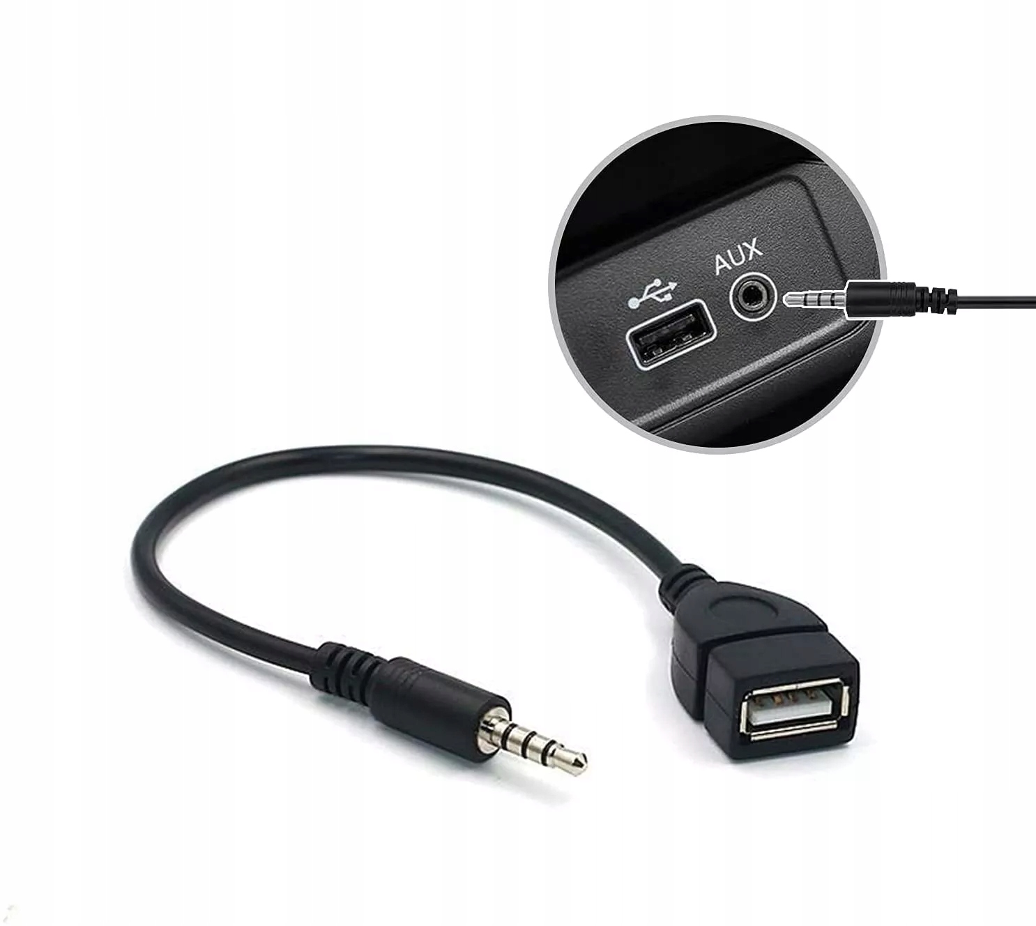 Адаптер Mini Jack – USB – дозволяє надсилати цифровий сигнал на пристрій, який підтримує цей тип адаптера (наприклад, деякі автомобільні радіоприймачі). Адаптер передає сигнал один до одного між 4-контактним роз'ємом USB і 4-контактним роз'ємом mini jack. Адаптер дуже маленький і зручний. Він виготовлений із дуже міцного ABS-пластику, що забезпечує довговічність.