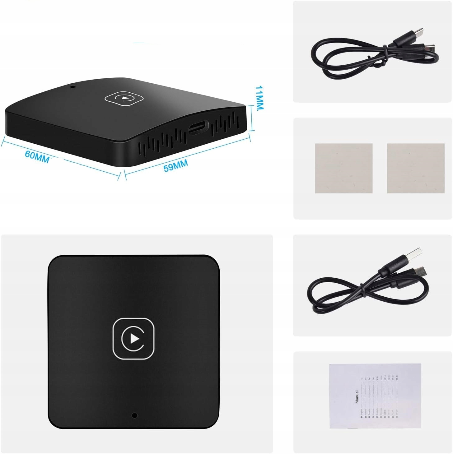 Wired Carplay for Wireless: За допомогою Wired and Wireless Carplay Box ви можете підключити свій телефон до автомобільного радіо, тож водіям не потрібно часто підключайте та від’єднуйте кабелі даних або шукайте USB-порти під час водіння, що значно підвищує безпеку водіння. (Підходить лише для автомобільного радіо з вбудованим дротовим Apple Carplay в оригінальному автомобілі)