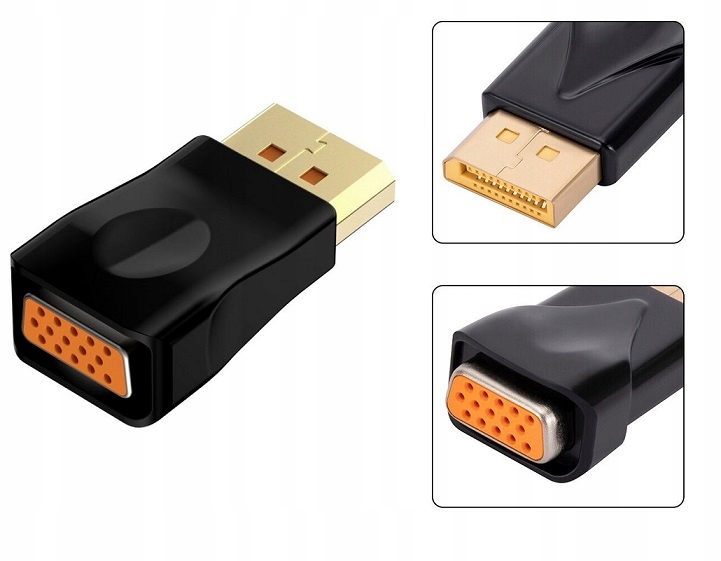 - Це дозволяє підключити пристрій з розеткою Displayport до кабелю, оснащеного VGA