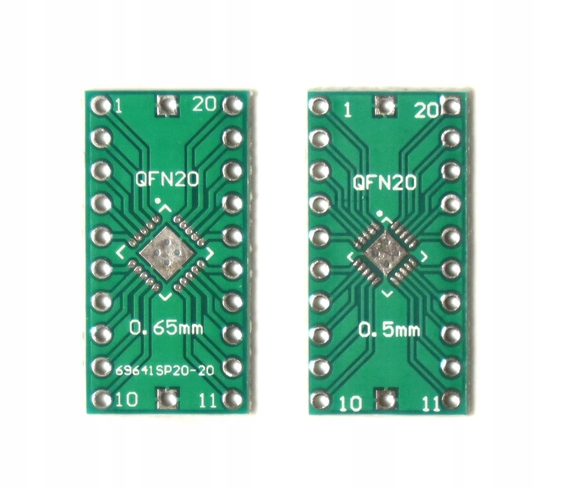Універсальний двосторонній адаптер (перехідник) для друкованої плати, що дозволяє використовувати SMD системи в QFN20 0,5 мм та QFN20 0,65 мм у наших власних конструкціях за технологією THT.