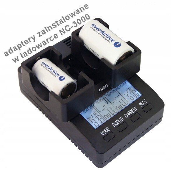 Високоякісний, оригінальний адаптер, який дозволяє заряджати будь-який Ni-MH/Ni-Cd акумулятор розміру R14 C або R20 D в everActive NC-3000 < зарядний пристрій /b>. Адаптер виготовлений з високоякісного матеріалу, його конструкція дозволяє також встановлювати його в професійний зарядний пристрій MH-C9000.
