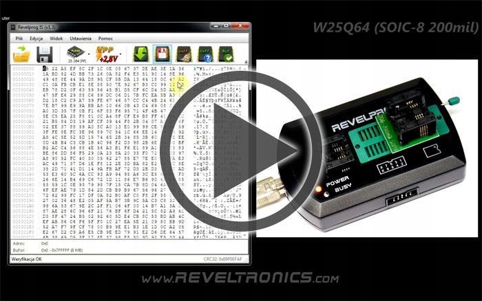 Введіть «REVELPROG-IS W25Q64» на YouTube, щоб переглянути приклад відео програмування пам’яті за допомогою адаптера SOIC-8 200mil