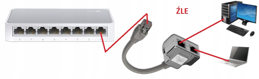 Пам’ятайте, що використовуючи цей тип розгалужувача, ми отримаємо максимальну пропускну здатність 100 Мбіт/с, і всі з’єднувальні кабелі, які використовуються з розгалужувачем, мають бути прямими кабелями без перехрещення.