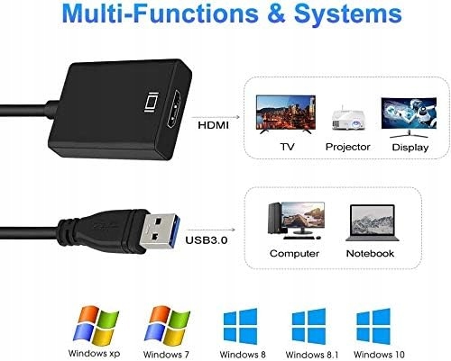 Цей USB -адаптер до HDMI дозволяє додати другий монітор або дисплей проектора за допомогою кабелю HDMI до комп'ютера Windows.