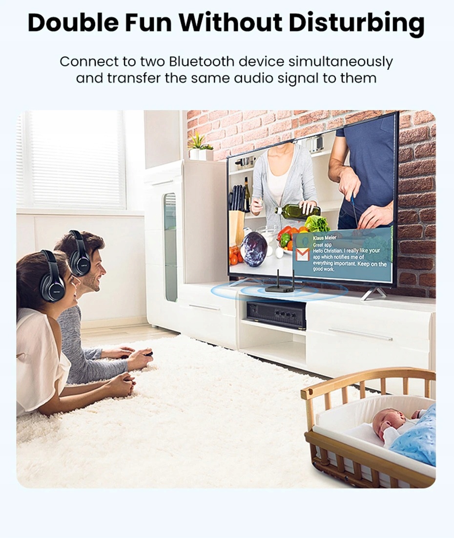Адаптер оснащений двома модулями Bluetooth. Завдяки цьому ви можете об’єднати два пристрої Bluetooth одночасно, незалежно від того, чи перебувають вони в режимі передавача чи приймача.